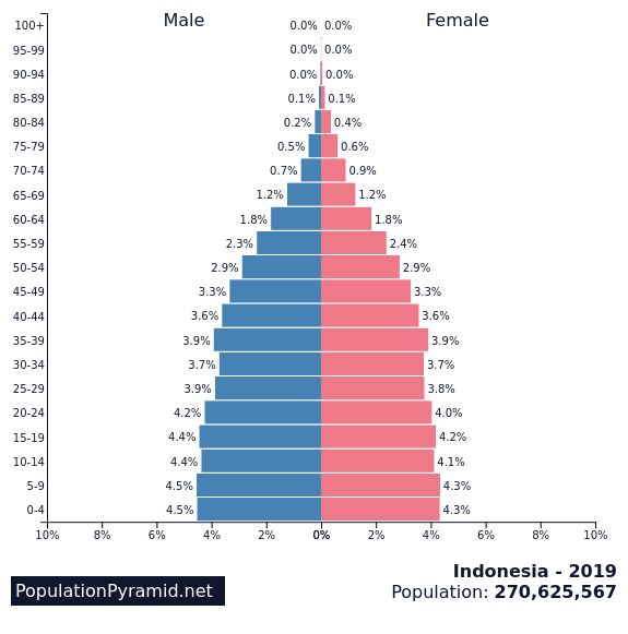 Gambar 3: Peta Demografi Indonesia 2020: Indonesia memiliki bonus demografi sampai 2042, namun kesalahan penanganan wabah Covid-19 akan menghilangkan kesempatan emas tersebut. Negara harus memastikan kesempatan baik tersebut tidak hilang karena CV19.