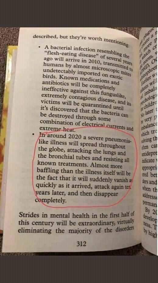 Di buku lainnya karya Sylvia Browne berjudul "End of Days" diterbitkan tahun 2008, pada halaman 312 disebutkan, pada tahun 2020, sebuah virus itu akan mewabah. Dinyatakan juga kalau virus itu akan cepat hilang, tapi akan muncul kembali 10 tahun kemudian, lalu lenyap seterusnya.