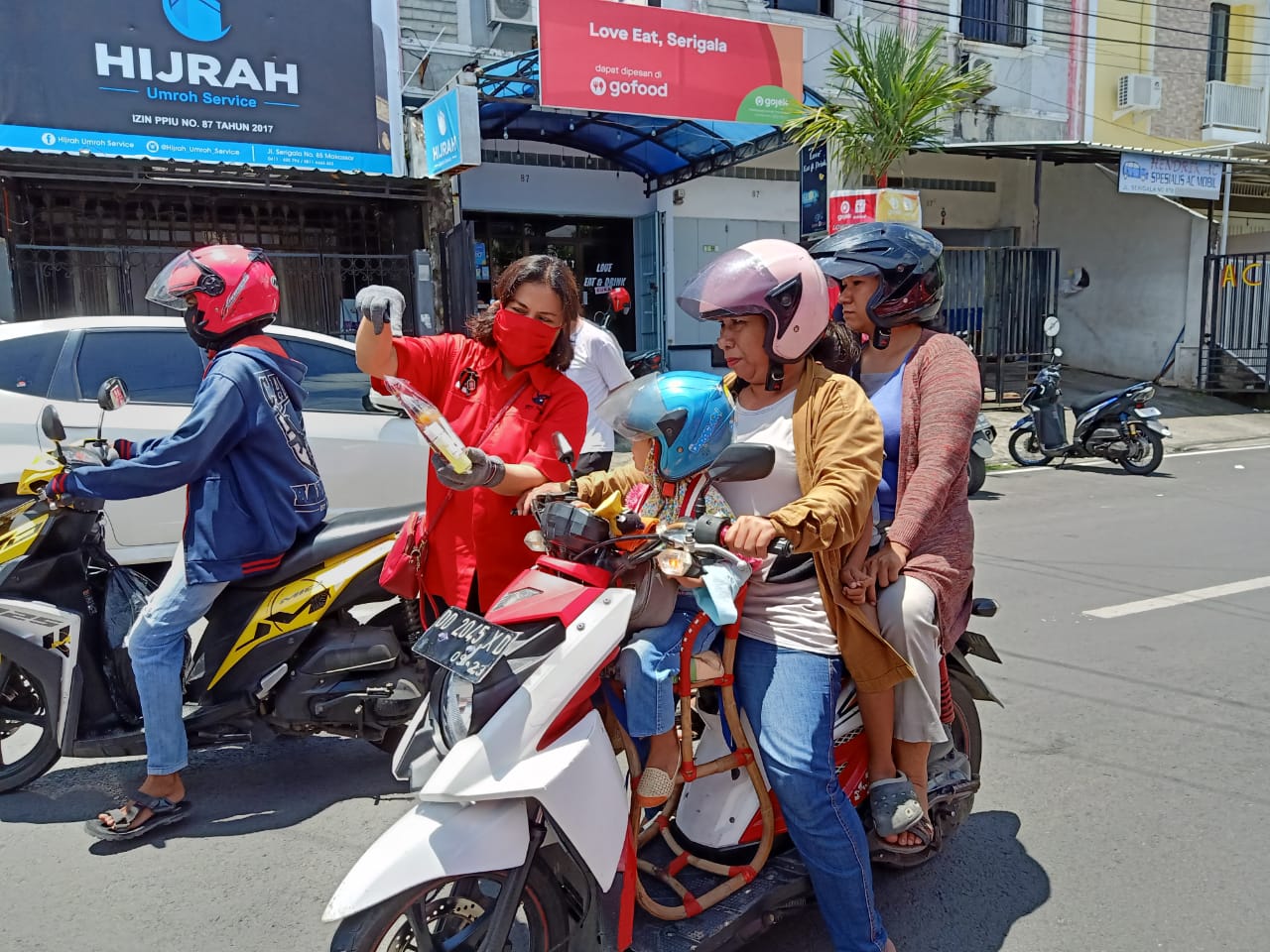 Pembagian hand sanitizer di prakarsai DPC PDI Perjuangan Kota Makassar
