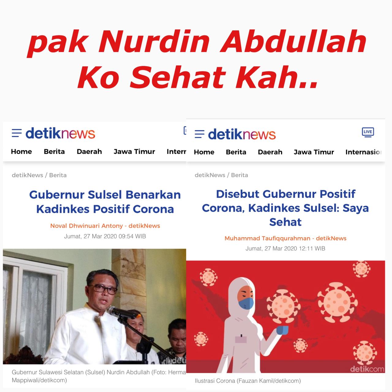 Beberapa warganet, lalu memajang tangkapan layar detik, antara pernyataan Pak Nurdin Abdullah dan bantahan Ichsan Mustari. Warganet membubuhi caption, "Pak Nurdin Abdullah, Ko Sehatkah".