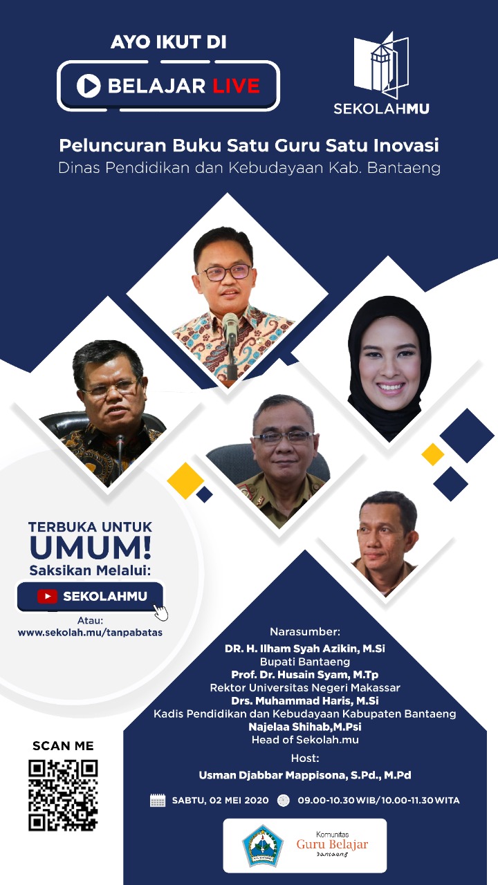 Ketua Komunitas Guru Belajar (KGB) Nusantara, Usman Djabbar Mappisona mengatakan, kegiatan diskusi ini akan dilaksanakan secara online dan akan dihadiri seluruh guru yang ada di Indonesia. Sejumlah pemateri akan hadir membedah buku ini. Mereka di antaranya adalah Bupati Bantaeng, DR Ilham Azikin, ada pula Head of Sekolah.mu, Najelaa Shihab dan Rektor UNM, Husain Syam serta Kepala Dinas Pendidikan Kabupaten Bantaeng, Muhammad Haris.