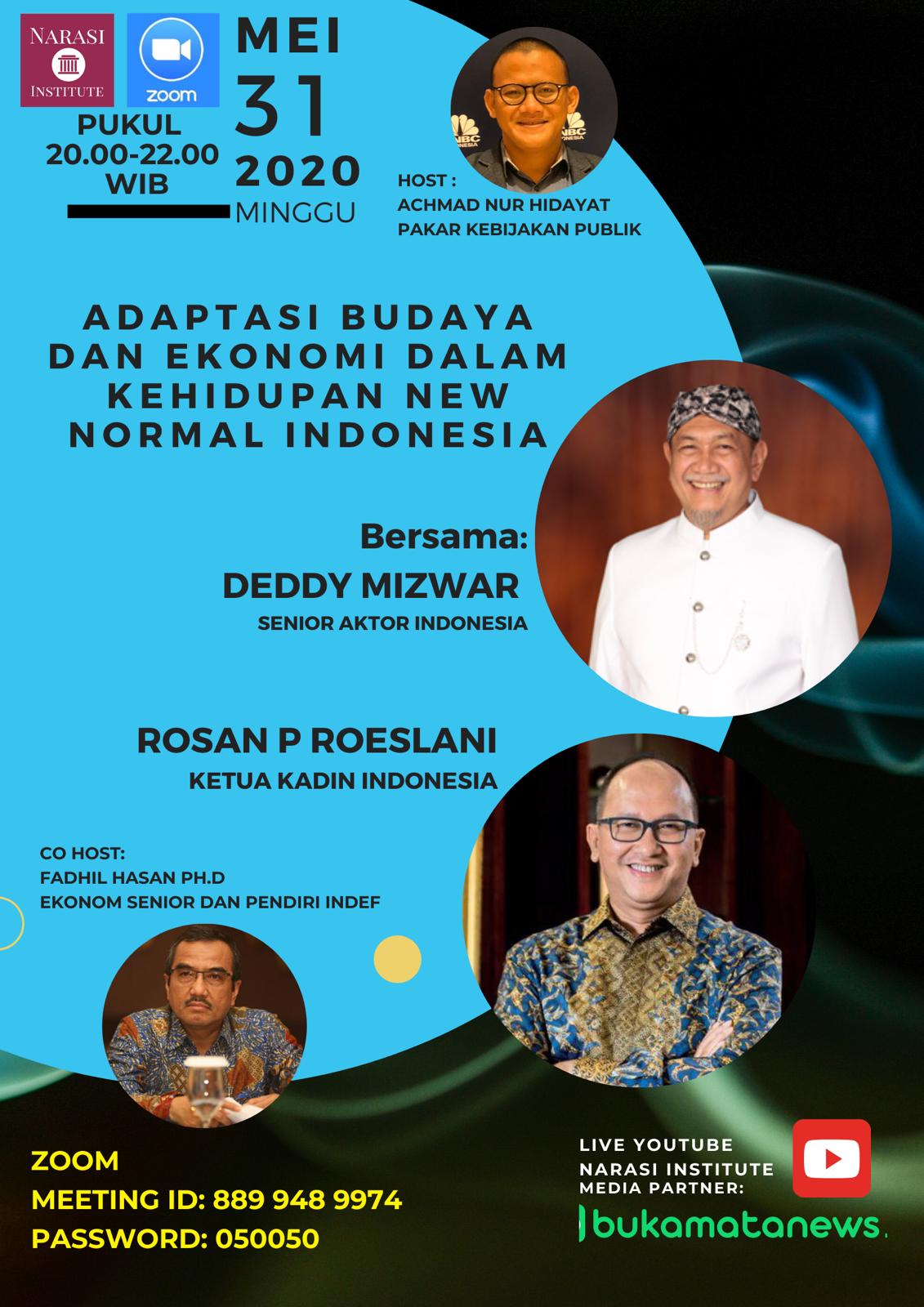 Itu diulas dalam Zominari bertajuk "Adaptasi Budaya dan Ekonomi dalam Kehidupan New Norma Indonesia 31 Mei 2020", yang dipandu Achmad Nur Hidayat, founder Narasi Institute.