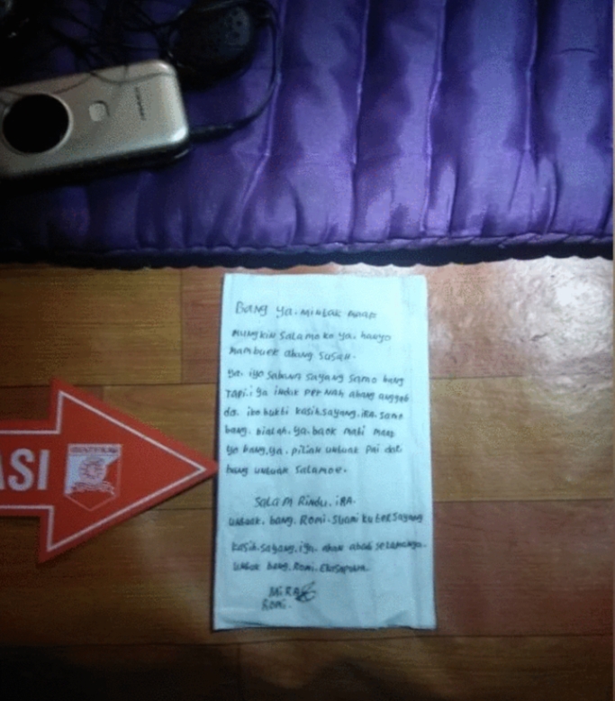 Saat ditemukan tidak bernyawa, ibu rumah tangga yang diketahui bernama Ira (28) ini sempat meninggalkan secarik surat wasiat.