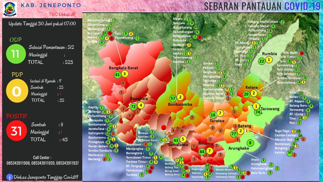 Kabag Humas dan Protokol Pemkab Jeneponto, Mustaufiq merilis data pertanggal 30 Juni, selang dua hari, sudah meningkat menjadi 31 orang positif dan 11 orang sembuh.