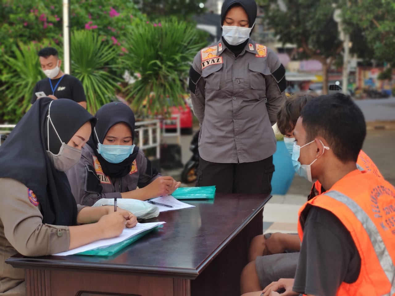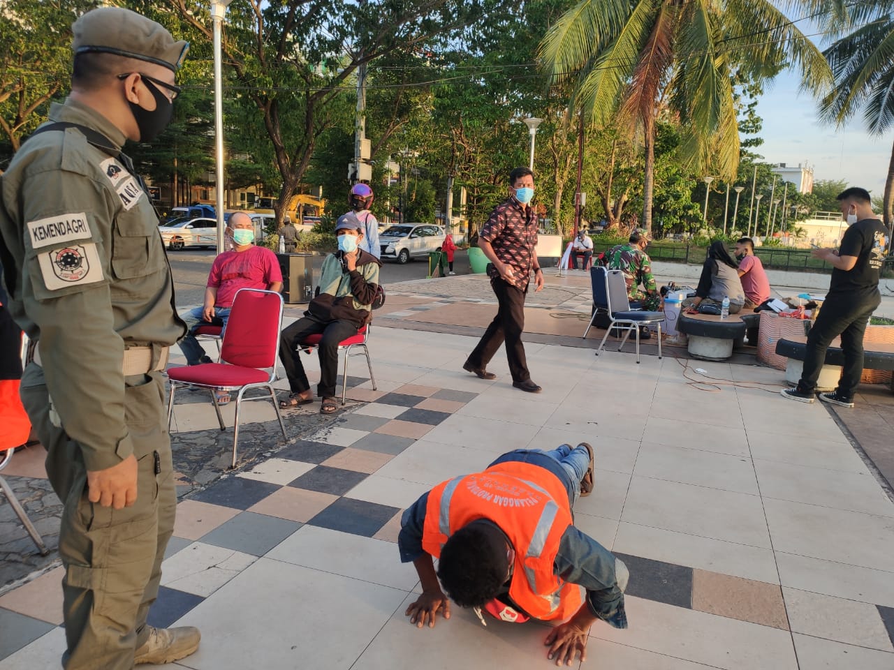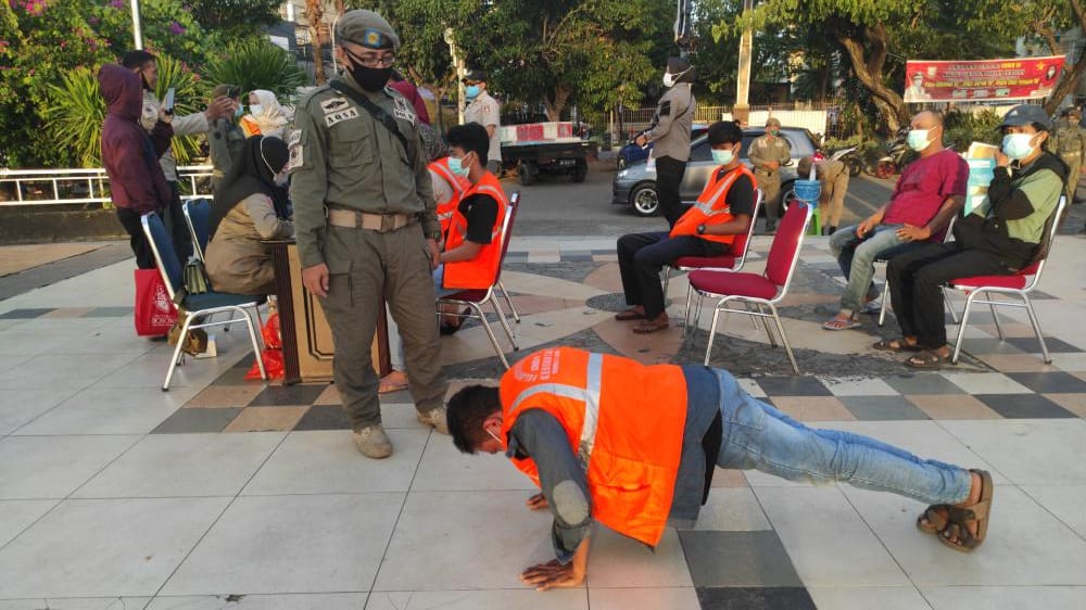 Para pengunjung terjaring karena tidak mengenakan masker. Mereka yang terjaring mendapat hukuman yang berbeda-beda.