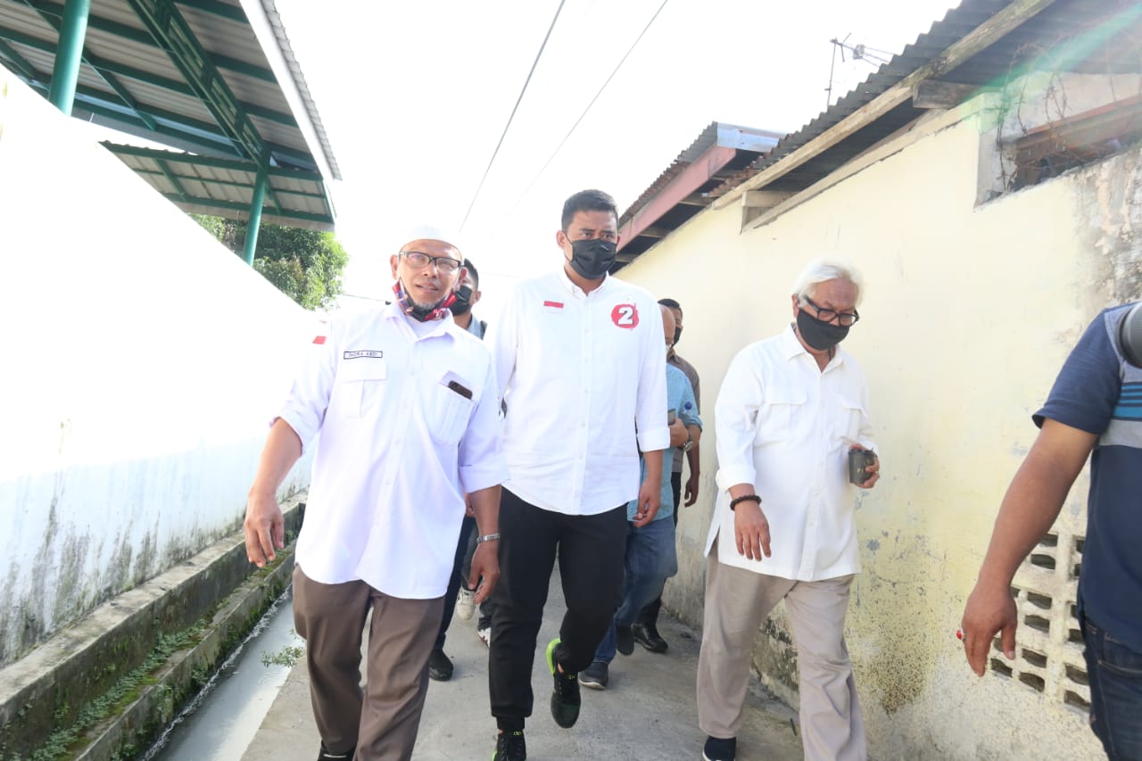 MEDAN, BUKAMATA - Aktor senior sekaligus tokoh nasional, Deddy Mizwar bersama calon wali Kota Medan, Bobby Afif Nasution menyapa langsung warga Kecamatan Medan Area, Kota Medan, Senin (30/11/2020).