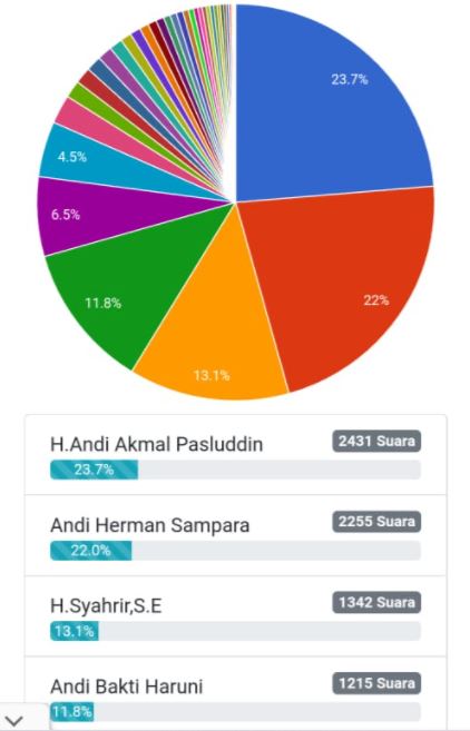 Andi Akmal Pasluddin, diunggulkan jadi Bupati Bone untuk periode berikutnya. Di polling independen, Andi Akmal mengumpulkan 23,7 persen.