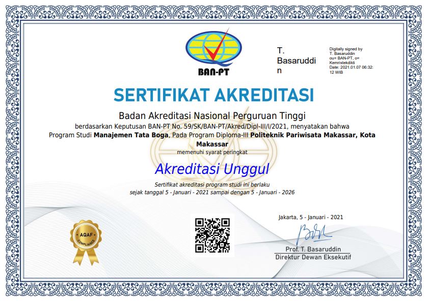 MAKASSAR, BUKAMATA - Prestasi yang luar biasa ditorehkan Direktur Poltekpar Makassar, Muhammad Arifin. Sejak dipercaya menakhodai Politeknik Pariwisata Makassar dari 17 September 2019, dia memang memiliki komitmen yang kuat untuk melakukan perubahan-perubahan yang tidak lepas dari standar kebijakan yang ada.