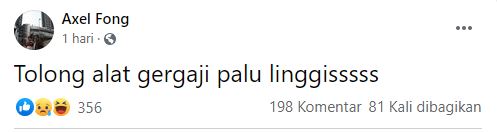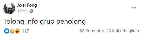 Masih direspons ketawa. Lalu pada pukul 03.12 Wita, Axel kembali memposting, "Tolong info grup penolong."