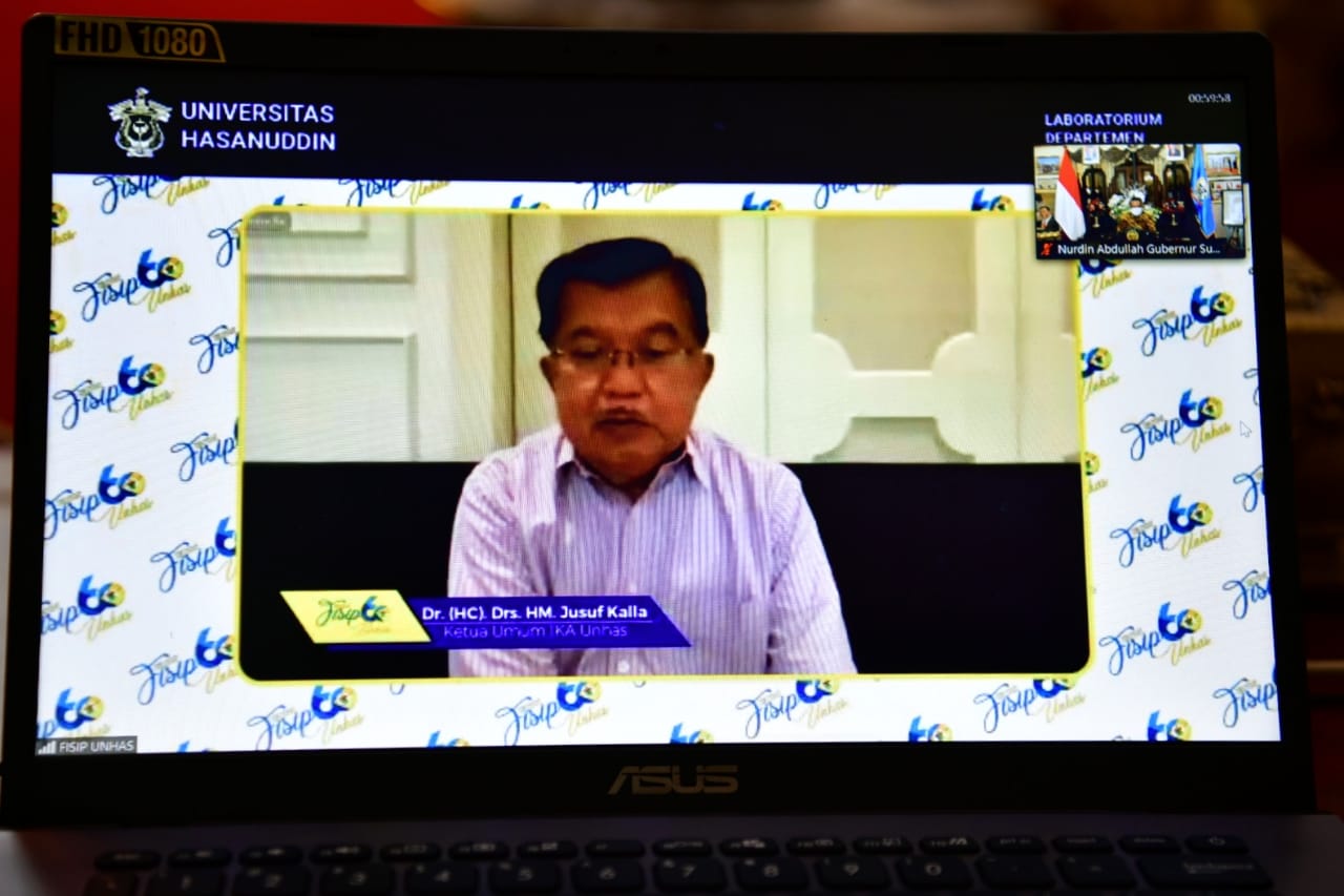 Jusuf Kalla - Nurdin Abdullah Hadiri Tudang Sipulung Virtual Dies Natalis ke-60 FISIP Unhas
