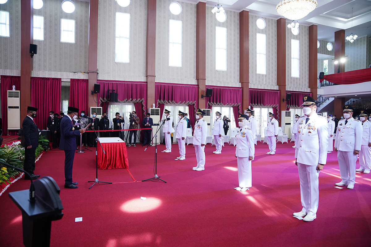 MAKASSAR, BUKAMATA - Gubernur Sulawesi Selatan (Sulsel), Prof HM Nurdin Abdullah, melantik 11 kepala daerah bupati/wali kota hasil Pilkada Serentak 2020, di Baruga Karaeng Pattingalloang, Rumah Jabatan Gubernur Sulsel, Jumat pagi, 26 Februari 2021.