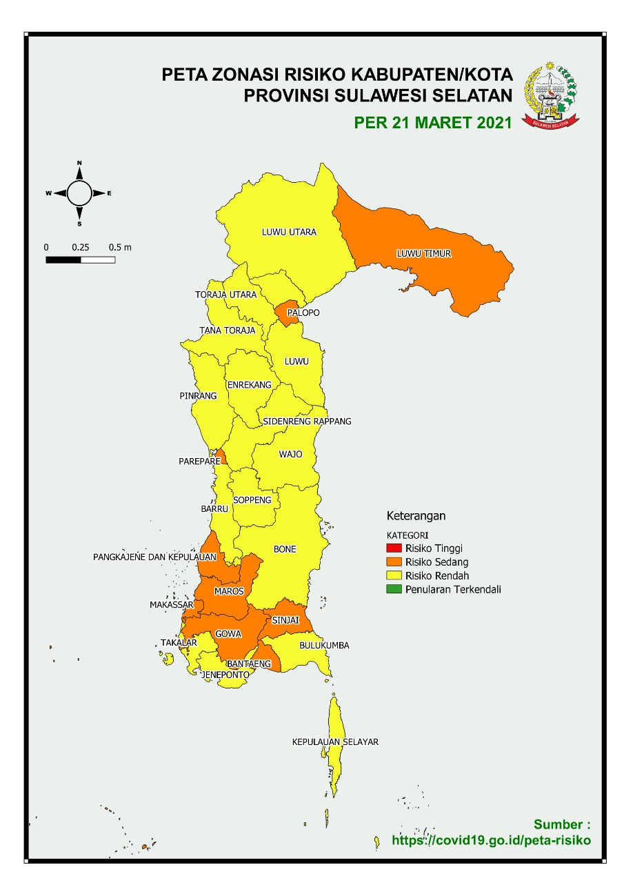 LUWU UTARA, BUKAMATA - Akhirnya Kabupaten Luwu Utara masuk zona kuning penyebaran COVID-19 di Provinsi Sulawesi Selatan. Kepastian ini diperoleh Satuan Tugas (Satgas) Penanganan COVID-19 Kabupaten Luwu Utara, Rabu (24/3/2021). Juru Bicara COVID-19 Luwu Utara, Komang Krisna, membenarkan informasi tersebut. Zona kuning berarti risiko penyebaran rendah.