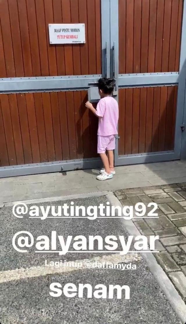 Tulisan tersebut tersorot kamera saat Ibunda Ayu Ting Ting, Umi Kalsum merekam cucunya, Bilqis sedang berjemur di depan rumah dan mengintip ke luar pagar beberapa waktu lalu.