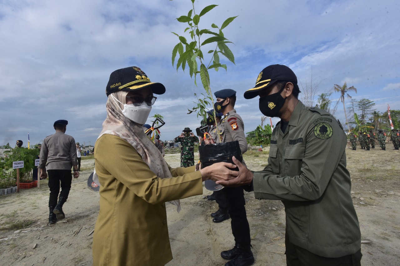 Bupati Luwu Utara Indah Putri Indriani, saat memimpin apel penanaman pohon di bantaran Sungai Masamba menyampikan, saat ini ancaman bencana alam masih menghantui masyarakat.