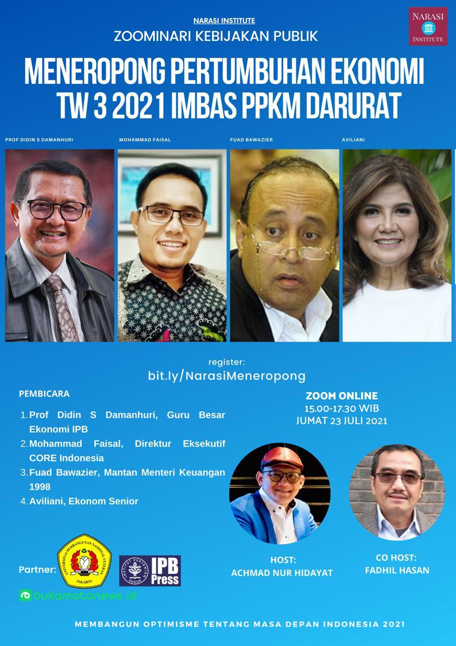 “Pertumbuhan ekonomi 2021 bisa positif di angka 2 sampai 3 persen bisa tercapai karena dorongan ekspor dan harga komoditas yang membaik namun bila varian delta dan varian baru tidak terkendali lagi maka ekonomi bisa negatif 1-2 persen,” papar Achmad Nur Hidayat yang juga pendiri Narasi Institute ini.