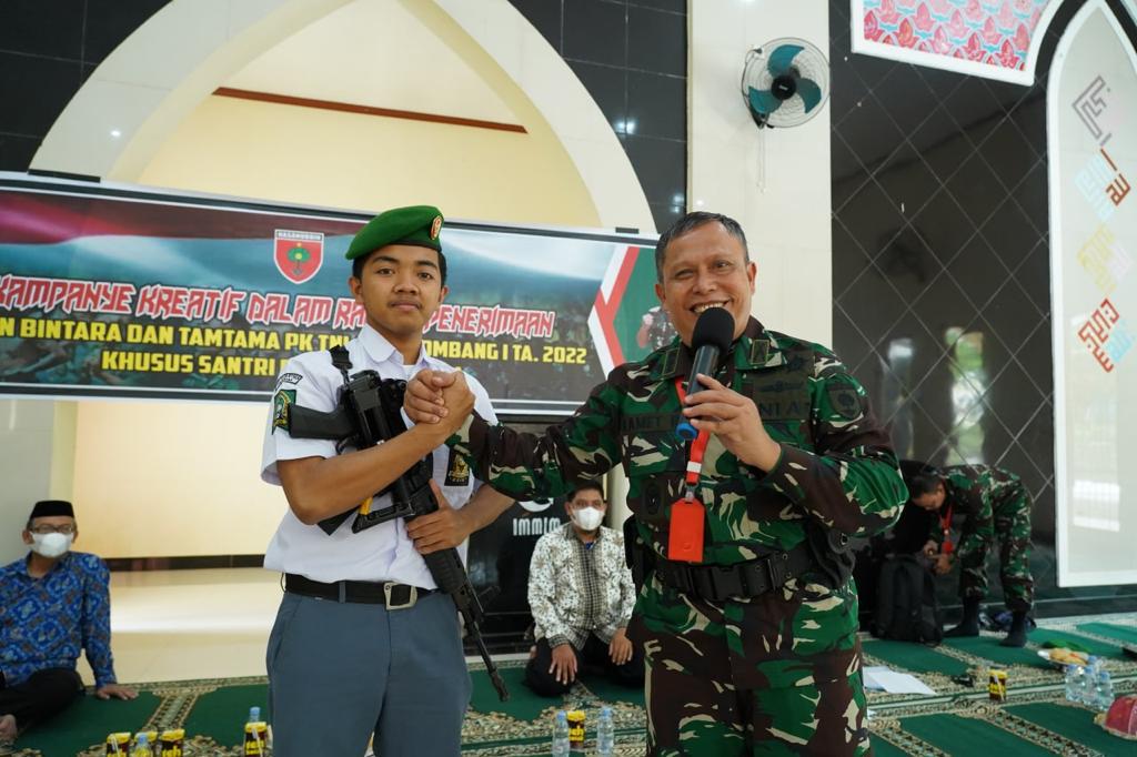 Sosialisasi itu dikemas dalam wujud kampanye kreatif penerimaan Bintara dan Tamtama TNI AD" href="https://bukamatanews.id/tag/tni-ad">TNI AD tahun 2022 gelombang I khusus santri dan lintas agama.