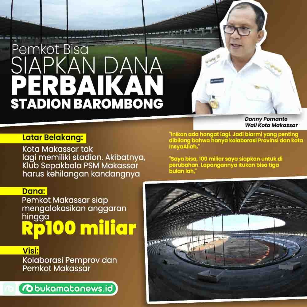 Menurut Danny, jika kolaborasi Pemprov Sulsel dan Pemkot Makassar dapat terealisasi untuk merehabilitasi Stadion Barombong, Pemkot Makassar siap mengalokasikan anggaran hingga Rp100 miliar.