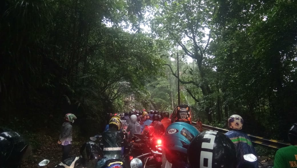 Kemacetan tersebut ternyata belum berhenti hingga Minggu malam. Sebab dari dua sisi jalan dari arah yang berlawanan kondisi arus lalu lintas tidak bisa bergerak. Sebab terjadi pohon tumbang hingga menutupi badan jalan.