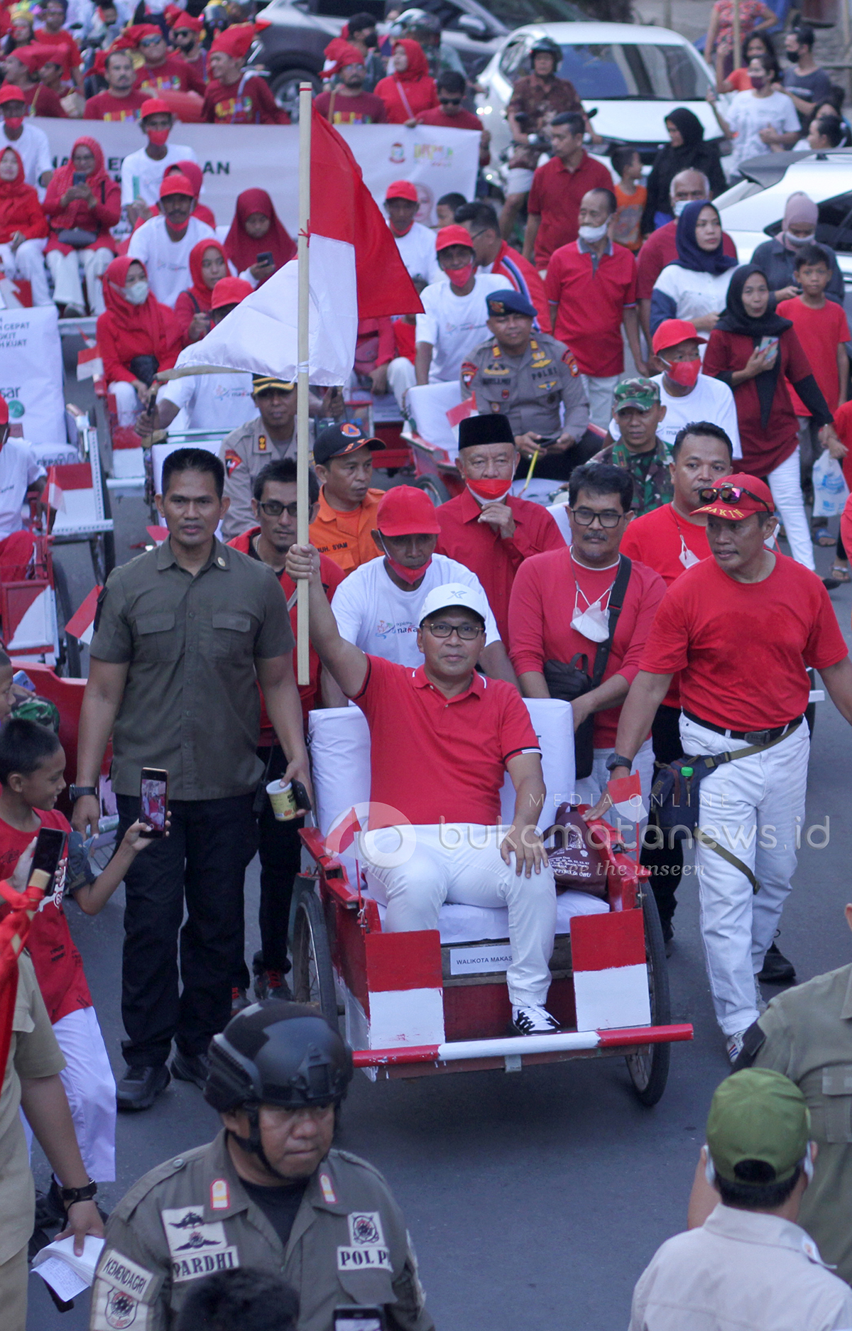 Kegiatan ini pula diramaikan oleh belasan becak yang mengiringi langkah Danny dan Fatma serta atraksi Barongsai dan puluhan penari yang ikut menyemarakkan peringatan Hari Kemerdekaan NKRI.
