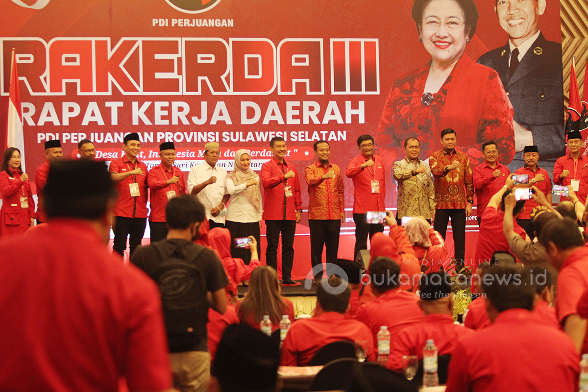 MAKASSAR, BUKAMATA - Partai Demokrasi Indonesia (PDI) Perjuangan berambisi mencetakkan kemenangan hatrick di Pemilu 2024. Ambisi ini ditanamkan kepada seluruh kader dari tingkatan teratas hingga akar rumput. Cita-cita meraih kemenangan tiga kali berturut-turut ini pula yang disampaikan Ketua DPD PDI Perjuangan Sulsel, Andi Ridwan Wit tiri (ARW), dalam Rapat Kerja Daerah (Rakerda) III PDI Perjuangan Sulsel.