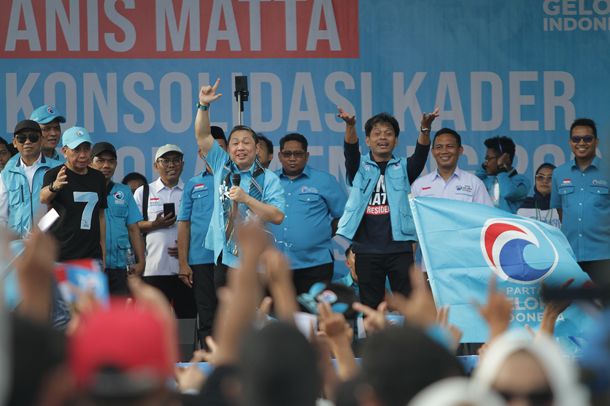 "Sekarang saya mau tanya, apakah bisa Partai Gelora membuat laut yang sedang tenang ini, menjadi laut yang bergelombang? Jangan sampai ombaknya cuma ombak yang ada dalam secangkir kopi," kata Anis Matta.
