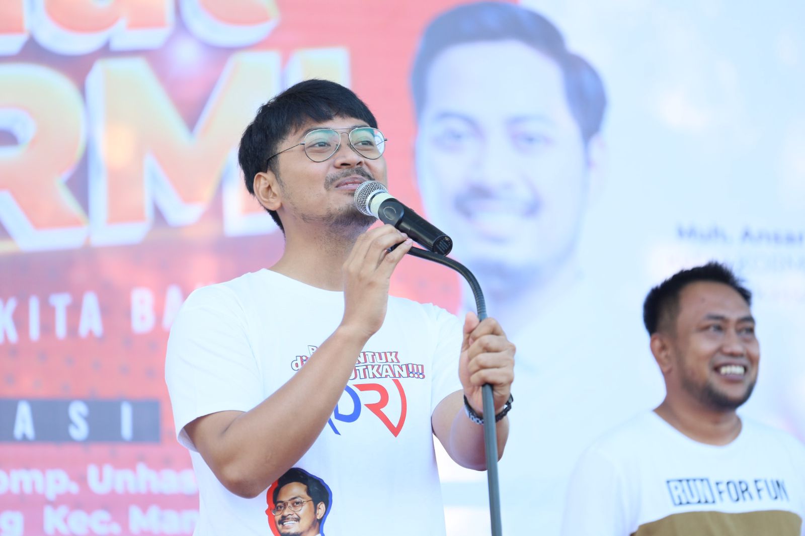 Di hadapan 3.500-an warga, dr Udin Saputra Malik berbagi tips kesehatan melalui program Dokter Kita, yaitu program dari Forum Kemanusiaan Kota Makassar (FKKM) yang ia ketuai.