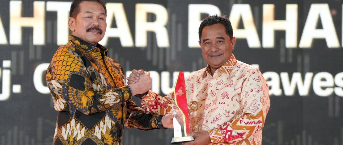 MAKASSAR, BUKAMATA - Penjabat Gubernur Sulawesi Selatan, Bahtiar Baharuddin meraih CNN Indonesia Awards 2024 dengan kategori Excellence Governance Leadership.