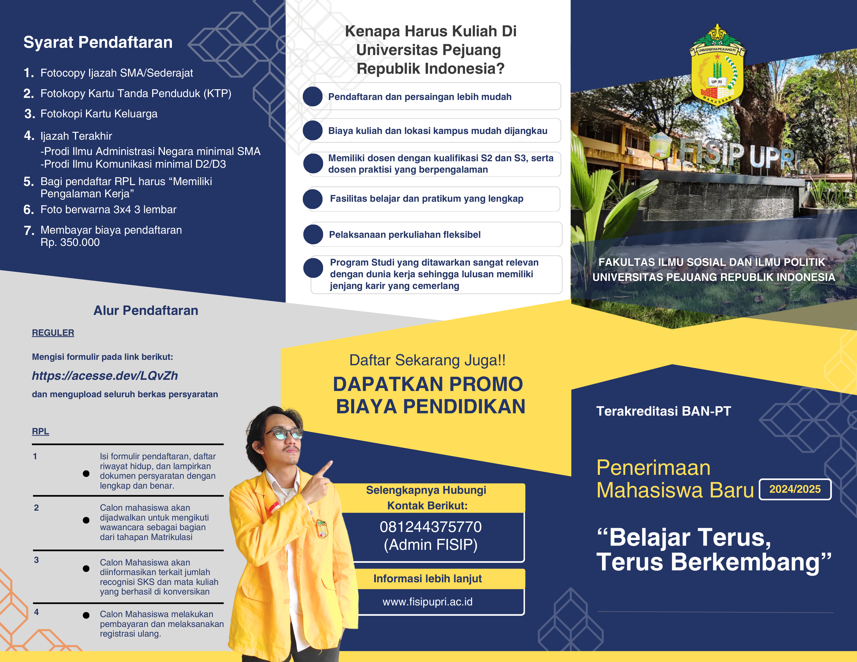 "Kami akan mempersiapkan Anda menghadapi dunia profesional dengan bekal pengetahuan dan keterampilan yang solid," kata Dekan Fisip UPRI Makassar, Nuddin.