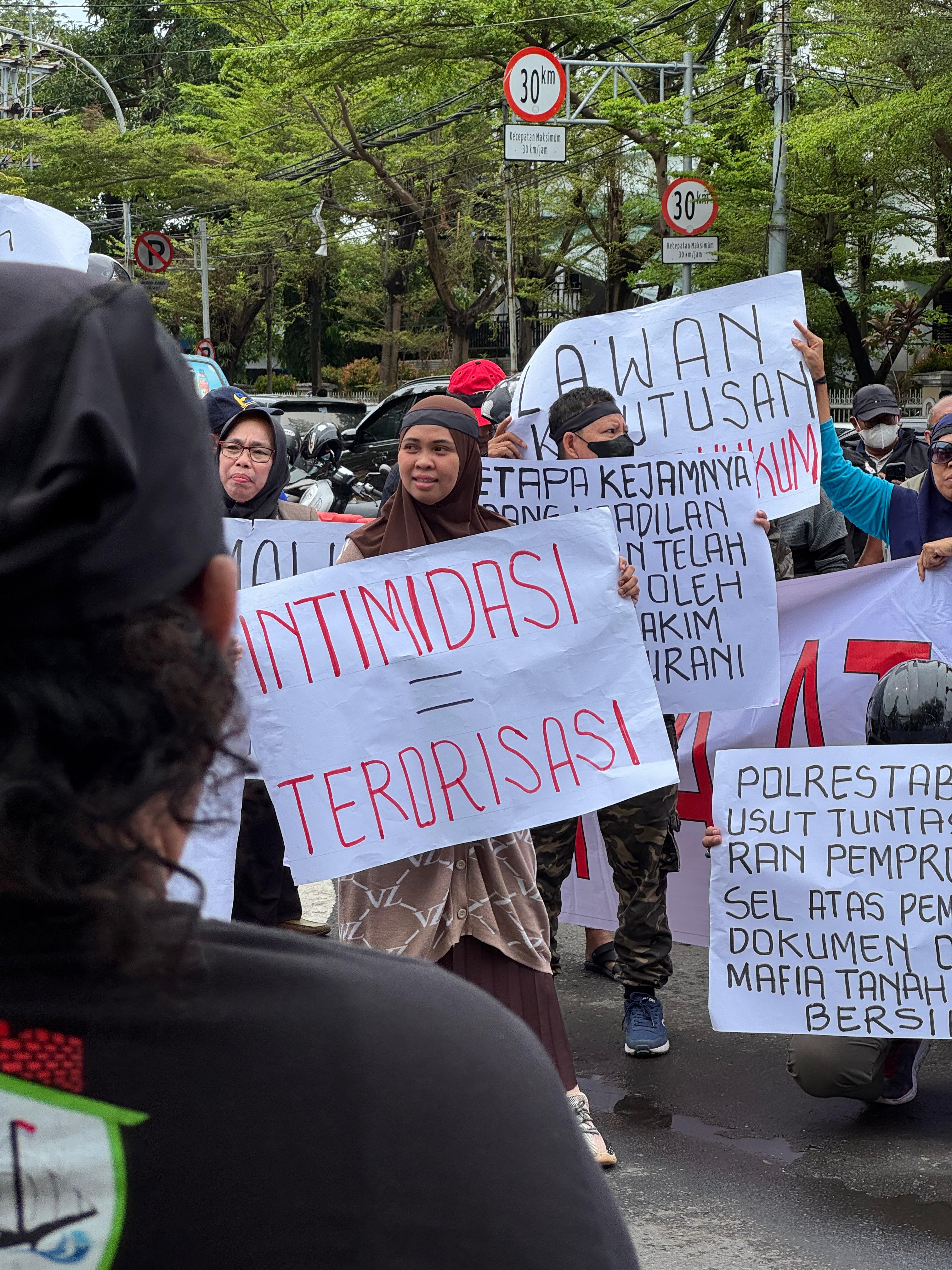 "Apakah nanti kalau ada orang Belanda datang bawa dokumen Eigendom Verponding, mereka bisa menuntut lahan di Indonesia? Ini sungguh mengkhawatirkan," keluh salah satu peserta aksi.