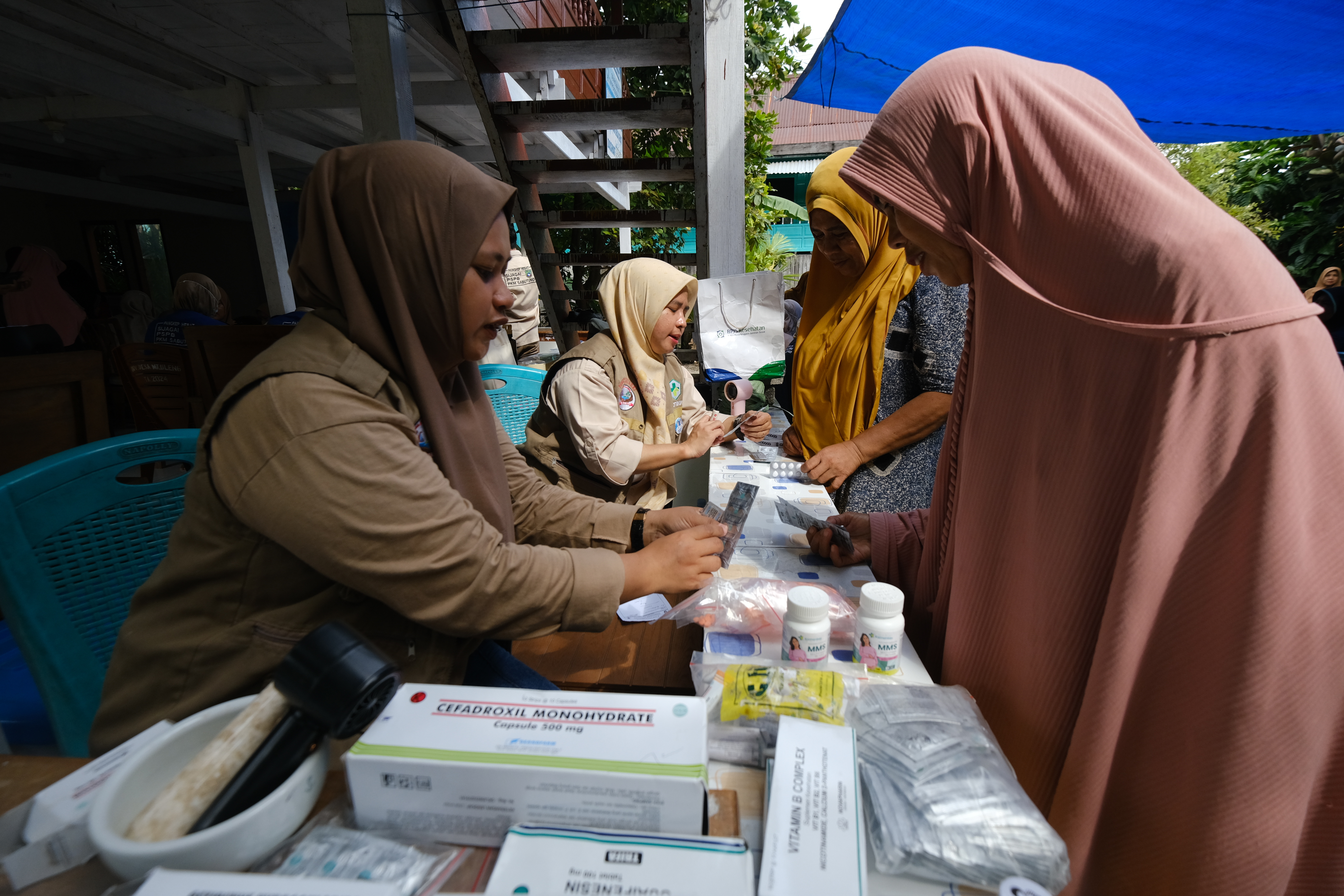 Di bawah tenda darurat, pelayanan kesehatan pun dimulai. Pemeriksaan umum, layanan gigi dan mulut, konsultasi kehamilan, bahkan edukasi kesehatan untuk ibu hamil—semuanya diberikan tanpa pungutan biaya. Warga hanya diminta menunjukkan kartu BPJS Kesehatan atau KTP.