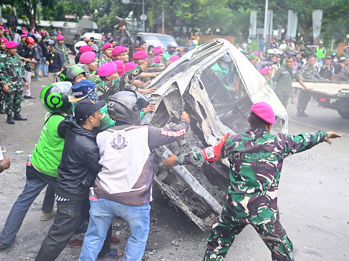 Upaya evakuasi itu sekaligus menjadi langkah awal meredakan ketegangan. Massa aksi yang sejak pagi bertahan di lokasi akhirnya sepakat membubarkan diri usai melakukan audiensi dengan pihak TNI.