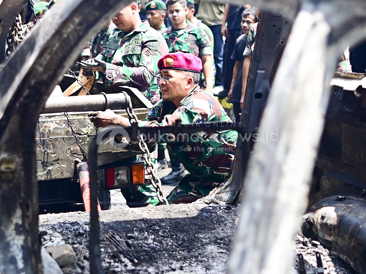 Untuk mensterilkan area, sebanyak tujuh truk towing dikerahkan guna mengangkut kerangka mobil-mobil yang sudah rata menjadi besi hangus. Evakuasi berlangsung cukup dramatis di tengah perhatian warga yang masih memadati sekitar lokasi.