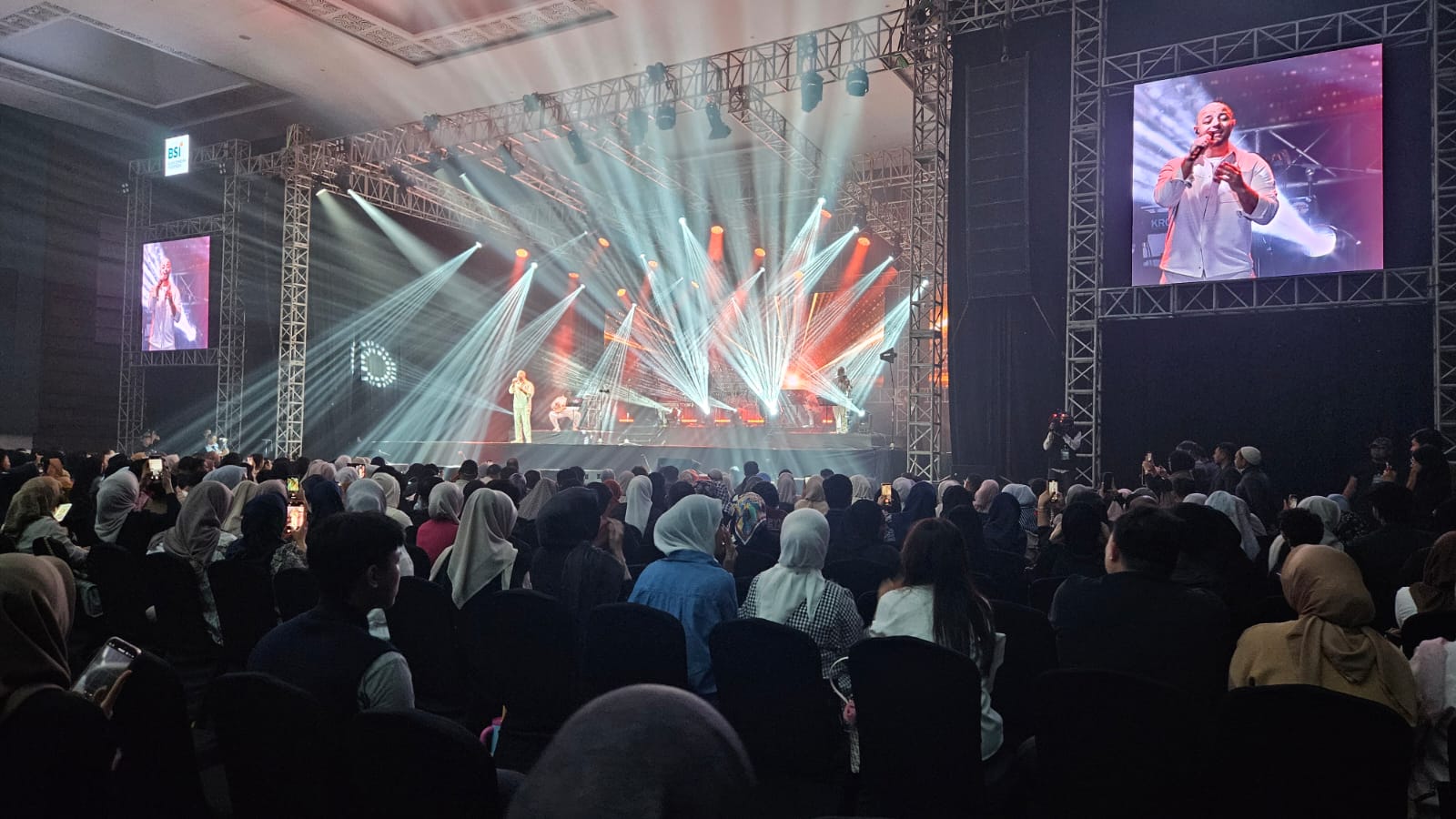 Sejak lagu pertama dimainkan, suasana langsung pecah. Sorak antusias penonton berpadu harmonis dengan alunan musik bernuansa islami yang hangat, menjadikan konser ini bukan sekadar hiburan, tetapi juga pengalaman spiritual yang menyentuh hati.