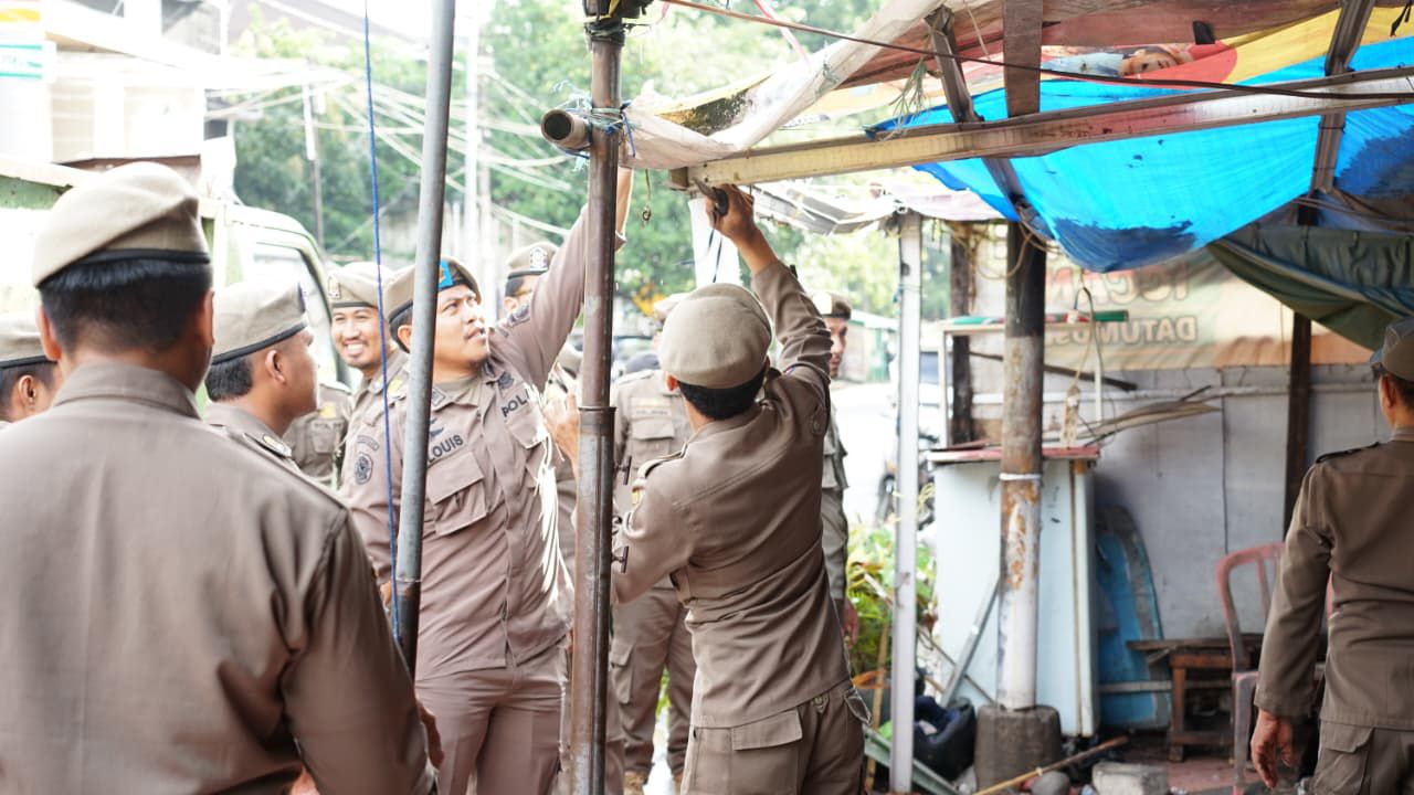 penertiban dilakukan secara humanis dengan mengedepankan pendekatan persuasif kepada para pedagang. Hasilnya, sejumlah pemilik lapak bersedia melakukan pembongkaran secara mandiri sehingga proses penertiban berlangsung tertib dan kondusif.